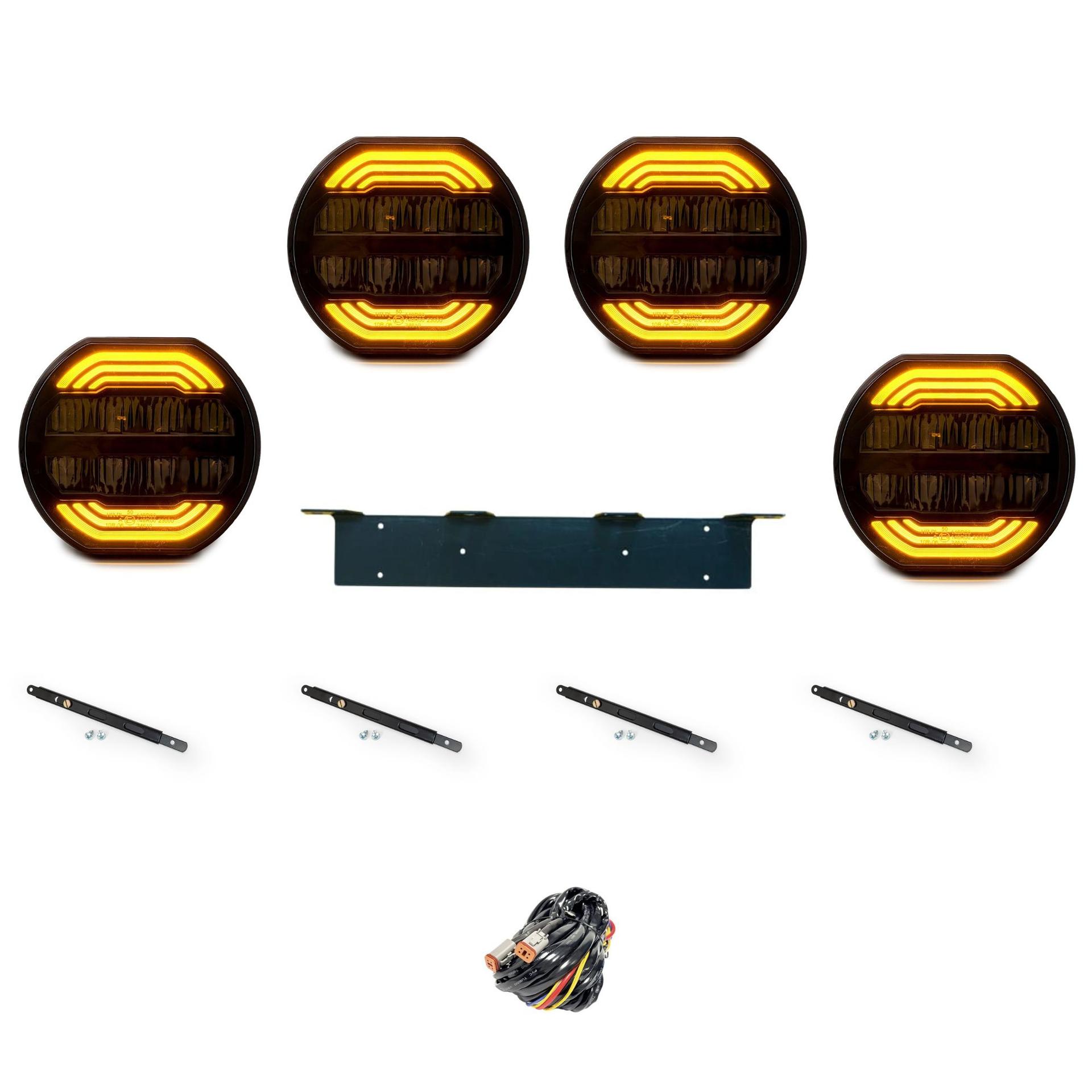 4-Pack med SC P7 Premium Extraljus tillsammans med hållare, toppstag och reläsats. Allt du behöver för att montera!