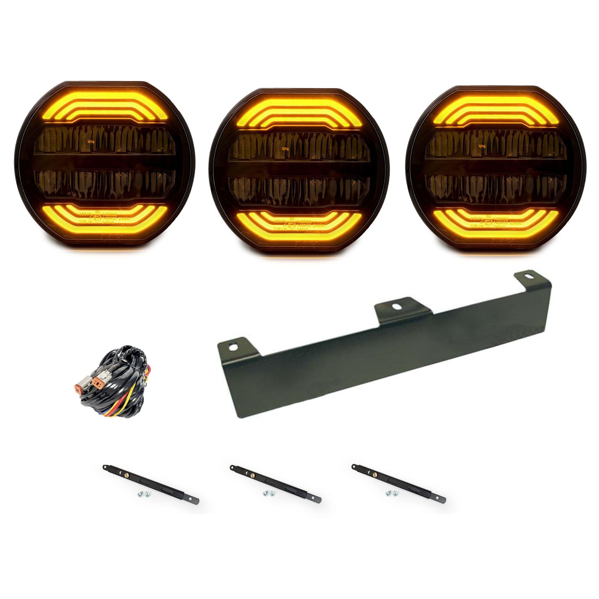 3-Pack med SC P9 Premium Extraljus tillsammans med hållare, toppstag och reläsats. Allt du behöver för att montera!