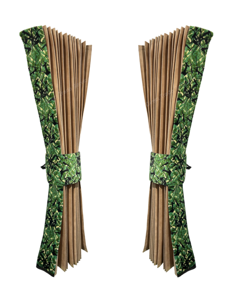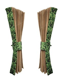 Ge din hytt eller ditt rum en stilren och ombonad look med detta side curtain-set i beige med Grön Danish Plush. Setet är framtaget för dig som vill ha den klassiska showtruck-känslan med lyxig plysch, men ändå hålla en sober och snygg färgkombination.
