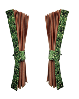 Ge din hytt eller ditt rum en stilren och ombonad look med detta side curtain-set i Brun med Grön Danish Plush. Setet är framtaget för dig som vill ha den klassiska showtruck-känslan med lyxig plysch, men ändå hålla en sober och snygg färgkombination.